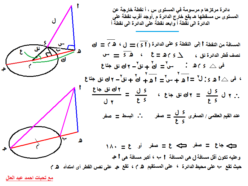 دائرة مركزها م مرسومة فى المستوى س ا نقطة خارجة عن المستوى س مسقطها ه يقع خارج الدائرة م اوجد اقرب نقطة على الدائرة الى نقطة ا