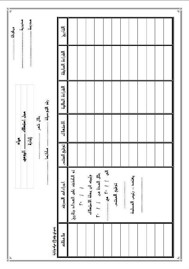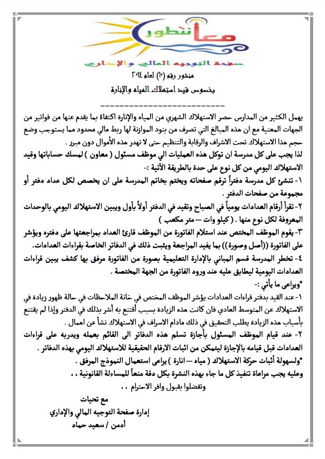 نشرة عامة رقم (10) لعام 2014 بخصوص قيد استهلاك المياه والإنارة