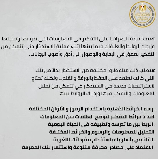 تعرفوا على الطريقة الجديدة للوصول لإجابة سؤال امتحان مادة #الجغرافيا ومادة التاريخ للصف #الأول_الثانوي باللغة العربية، والذي يعتمد على فهم المحتوى الدراسي والتفكير النقدي.