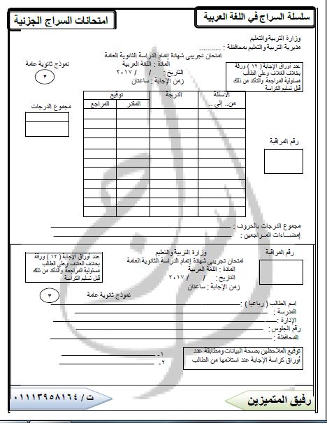 إليكم الامتحان الثالث بنظام الكتيب ملحقا بالمراجعة الثالثة