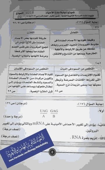 باقى نموذج الإجابة الرسمى 2018
