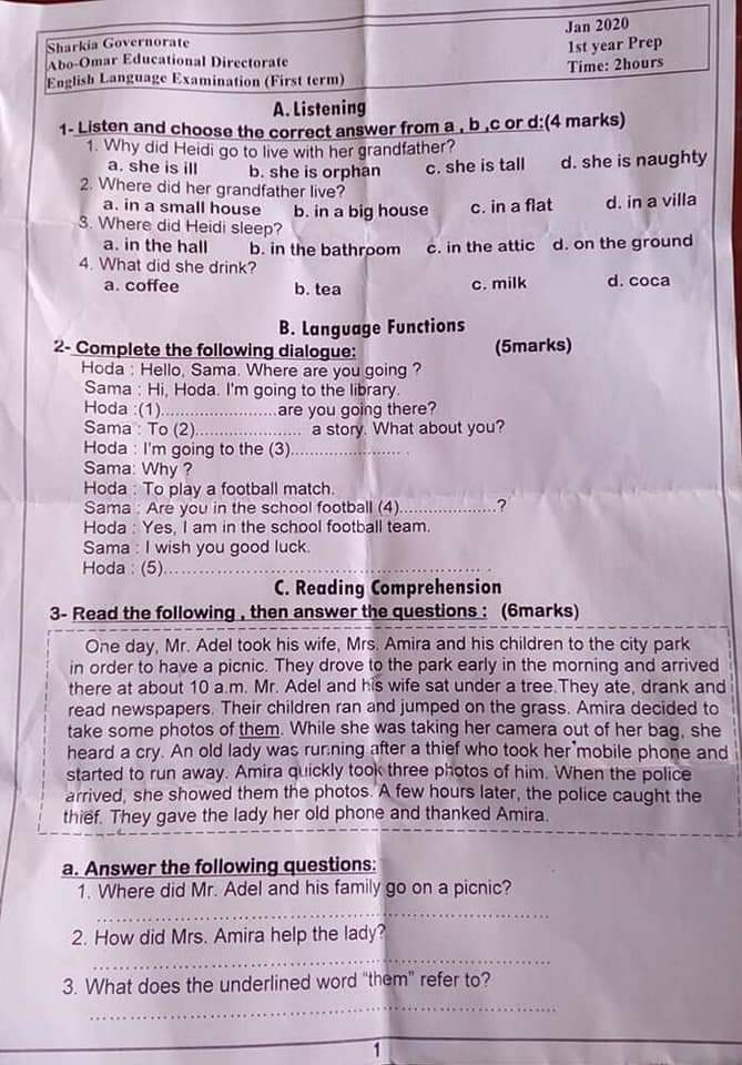 افتراضي Prep one test 2020