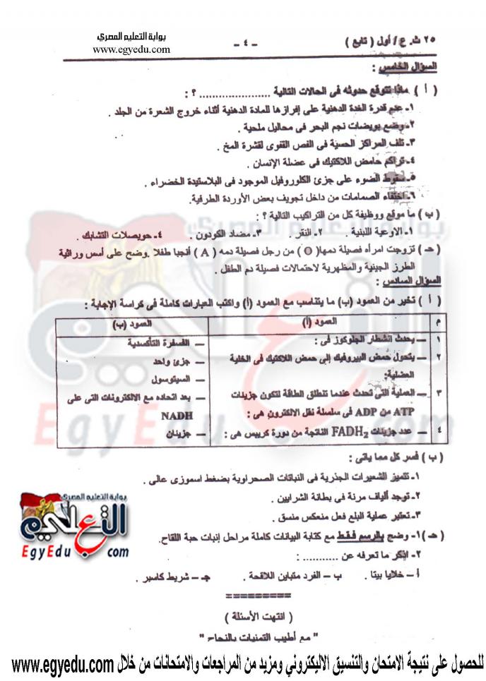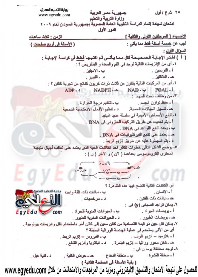 العودة   بوابة الثانوية العامة المصرية > الصف الثالث الثانوي 2024 / 2025 > شعبـة العلـوم و الرياضيـات > الأحياء 3ث > الاختبارات الشاملة أحياء 3ث