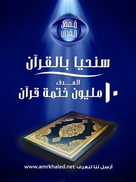 دى حملة عملها الاستاذ عمرو خالد والمطلوب اننا ننشره ونبلغ الناس انهم يختمو القران المطلوب اننا نوصل بالختمات لحد ل10 مليون ختمة يعنى كل واحد يجتهد على قد ميقدر يختم ختمة ختمتين تلاتة اللى ربنا يقدروا عليه وفيه عداد على موقع عمرو خالد كل متختم ختمة ادخل ودوس عل العداد وكل ما حد من قرايبك يختم ومعندوش كمبيوتر ادخلى انتى وحطى مكانه وياريت لو حد عنده طبعة يطبع البوستر انا رافعاه مرفق تحت يريت تطبعوه وتوزعوه تعلقوه فى حوش البيت توزعوه على قريبكم المهم اننا نبلغ الناس بالحملة دى