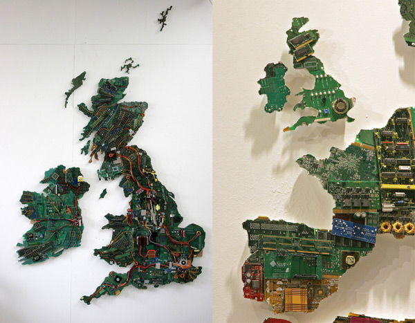 Enormous World Map Made from RecycledComputers by Susan Stockwell
