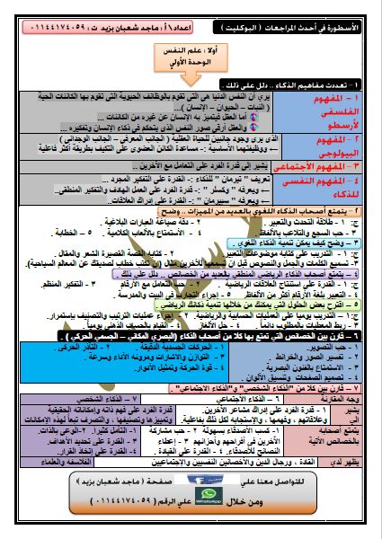 ننشر لطلبة وطالبات الثانوية العامة، أقوى مذكرة فى المراجعة النهائية فى علم النفس للثانوية العامة 2017.