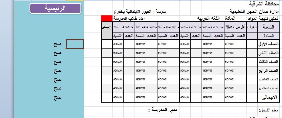 ملف بسيط مفتوح لتحليل نتائج الطلاب حسب المواصفات الوارده من الادارة اليكم بعض الصور الملف مفتوح كلياا لمن اراد التعديل على ان يوقم بنشر التعديلات هناا ومن ارد التعديلات فل يتفضل هناا