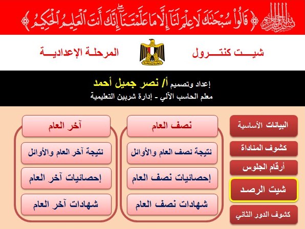 كمان الشهادات لابد من تعديلها واضافة درجة التحريرى لها محاولة اضافة الدور الثانى ايضا اضافة التحقق من قيمة الخلايا بحيث لا تقبل اكثر من درجة المادة غير ذلك هو بسيط وسهل الاستخدام جزاك الله خير |