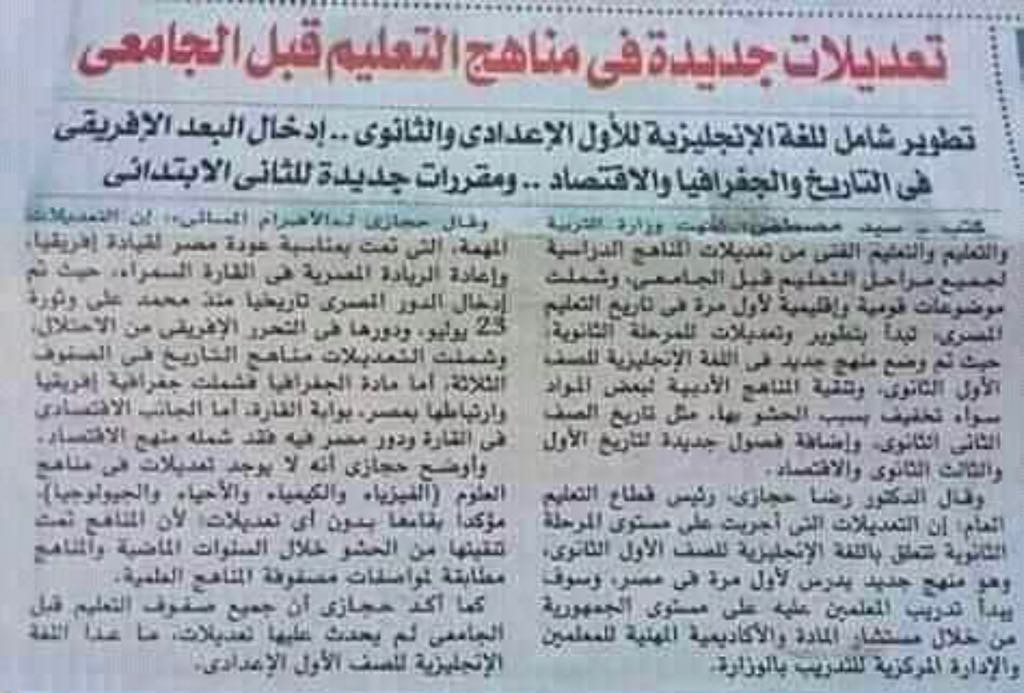 تغير كامل في منهج الصف الأول الإعدادي والصف الأول الثانوي وليس فقط تغير للمواصفات