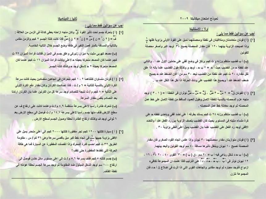 نموذج امتحان ميكانيكا 2009