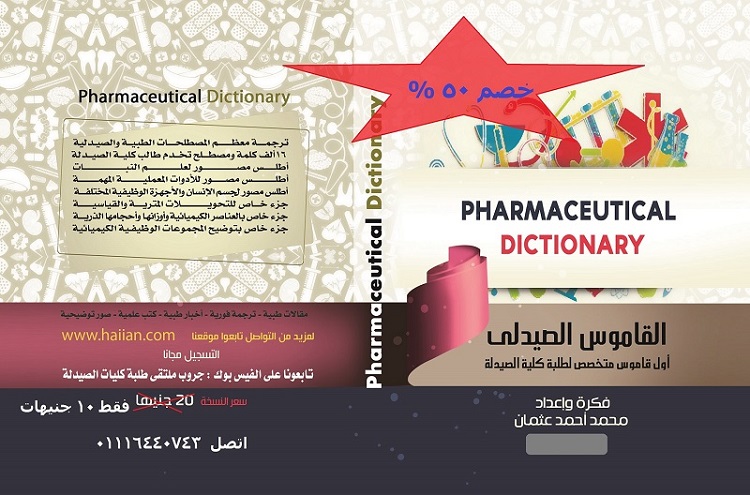 ترجمة معظم المصطلحات الطبية والصيدلية آلاف الكلمات والمصطلحات تخدم كل طالب كلية الصيدلة أطلس مصور لعلم النبات أطلس مصور للأدوات المعملية المهمة أطلس مصور لجسم الإنسان والأجهزة الوظيفية المختلفة جزء خاص للتحويلات المترية والقياسية |