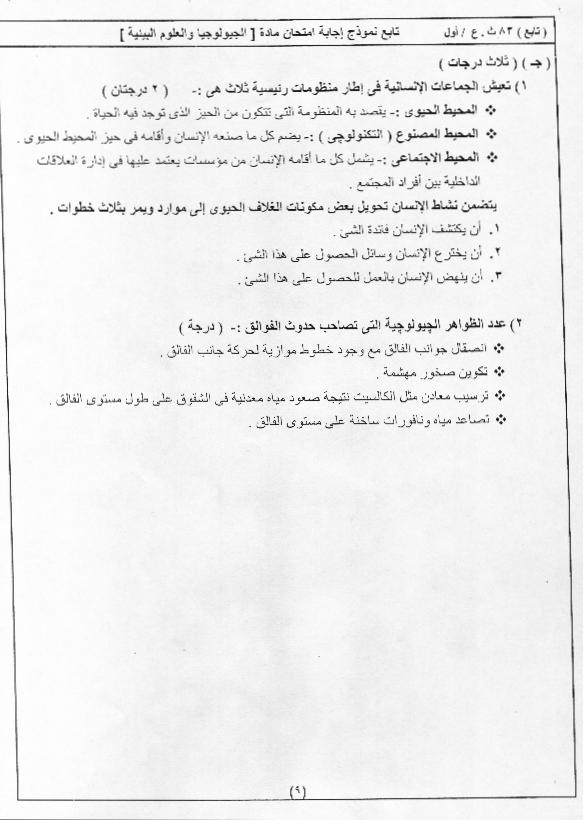 نموذج الاجابة الرسمى كاملا وتوزيع الدرجات عليه