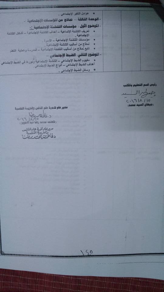 تابع توزيع منهج علم النفس الصف الثانى والثالث للعام الدراسى 2016--2017