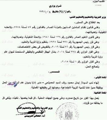 انهاء ندب ايمان مصلحي مستشارة التربية الاجتماعية