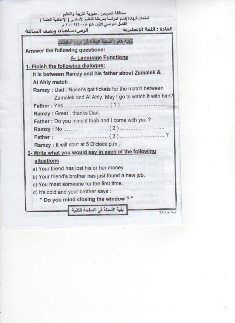 إمتحان محافظة السويس 2008/2009 وجدته بفضل الله أثناء بحثي عن آخر الامتحانات لعل الله ينفعنا به جميعا أسألكم الدعاء وفقكم الله جميعا رضا الشيخ |