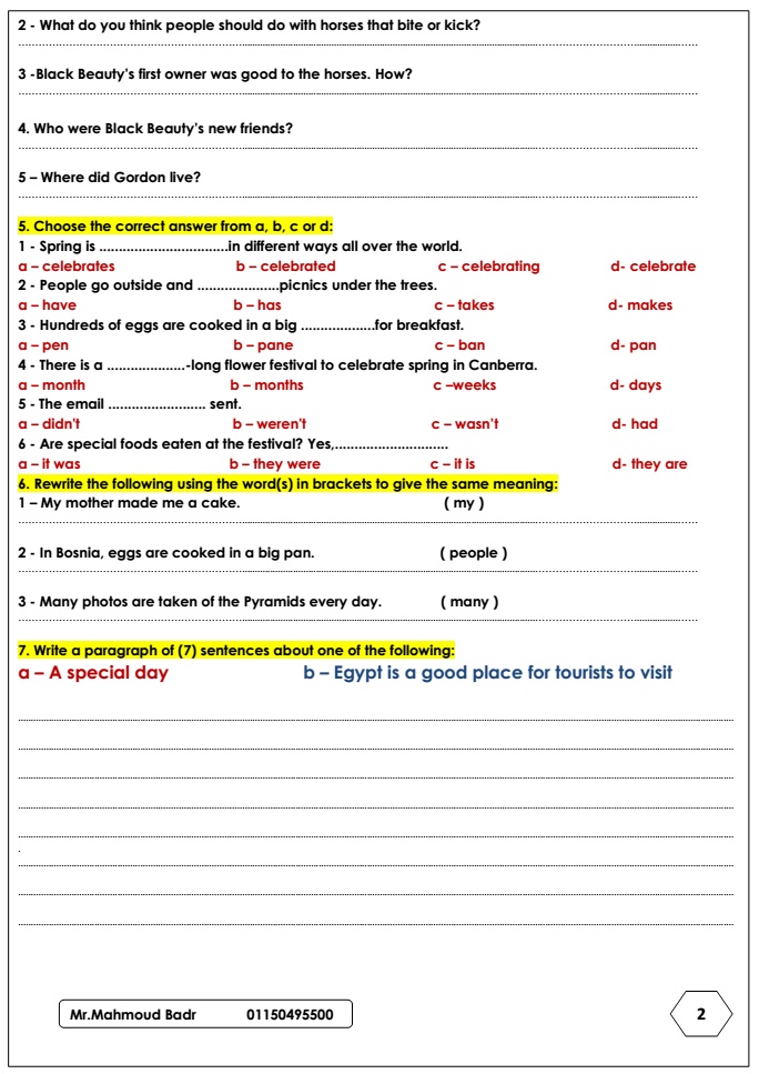 امتحان بصيغة بي دي اف جاهز للطباعة - الوحدة الثالثة والفصل الاول للصف الثالث الاعدادي ترم اول