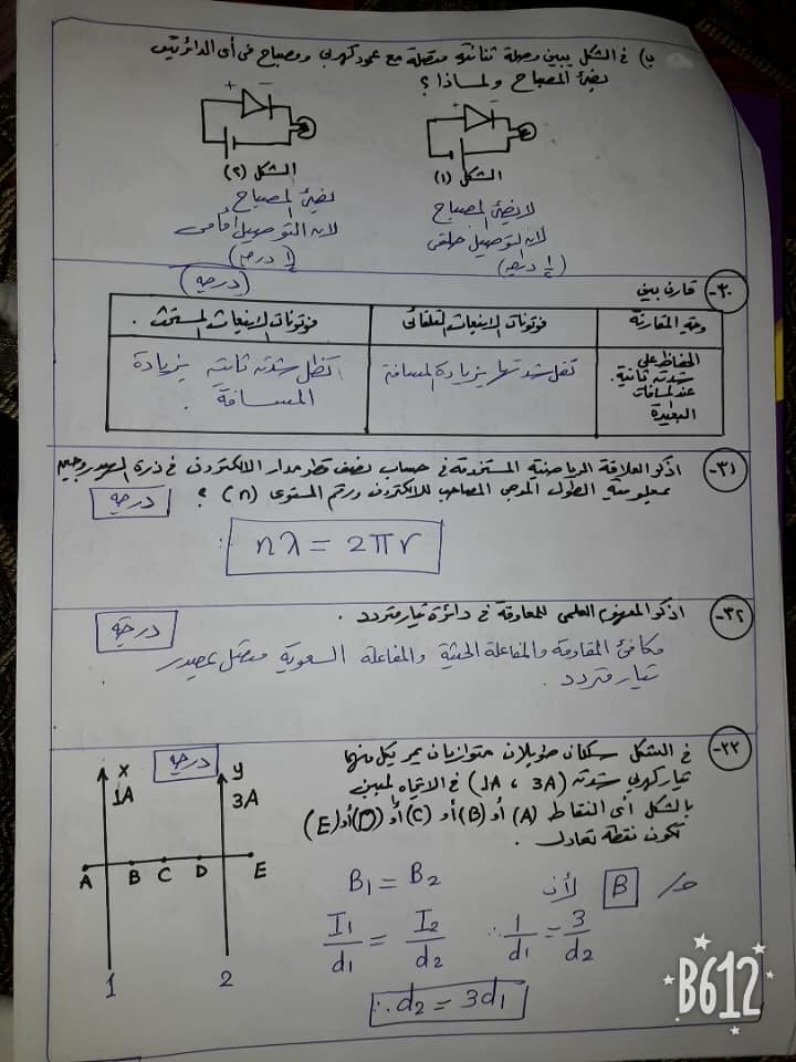 تابع اجابة امتحان الفيزياء بالدرجات 2018