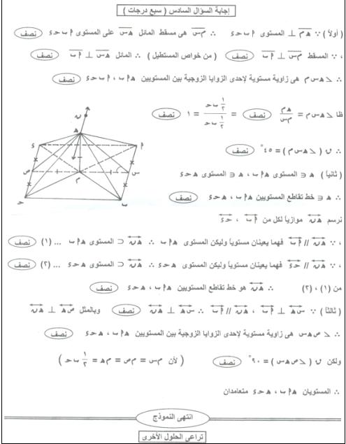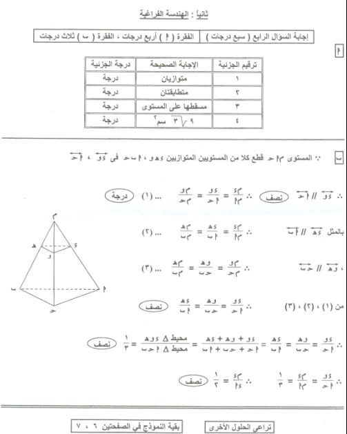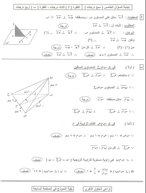 تابع امتحان الجبر والفراغية + نموذج الاجابة 2010