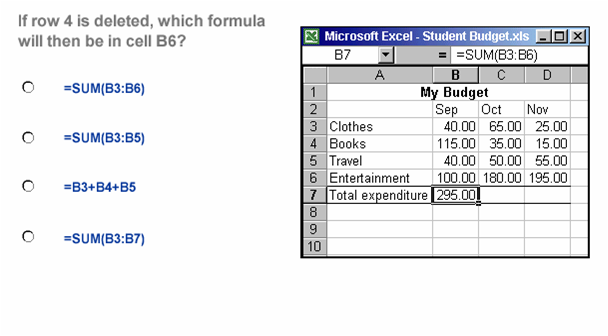 الاجابة الثالثة في حد ذاتها صحيحة ولكنها ليست صحيحة هنا في هذه الحالة لأن هناك دالة ( sum) في الخلية وعند سحب الدالة لخليه أخري ستنتقل بنفس التنسيق وسيتم تغيير الازم فقط وليس كتابة معادلة جديدة بتنسيق جديد