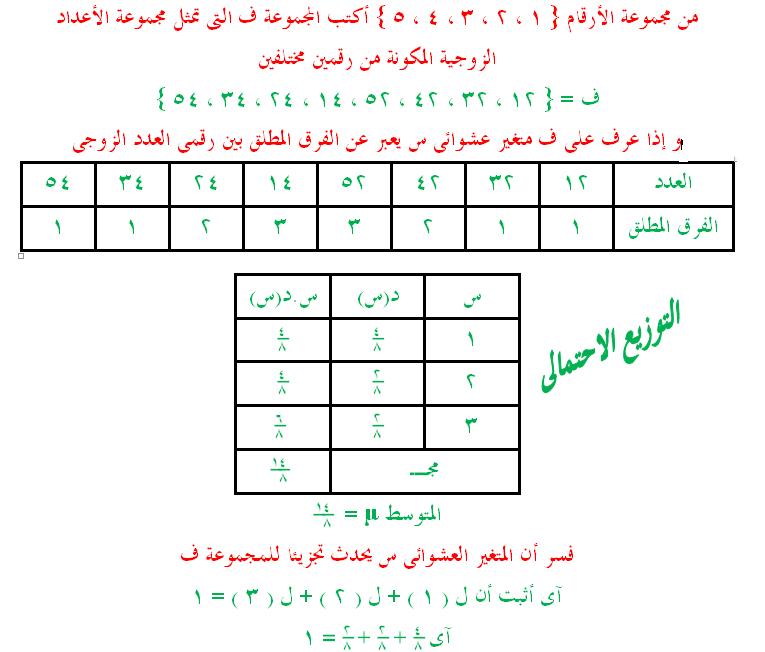 من مجموعة الأرقام { 1 ، 2 ، 3 ، 4 ، 5 } أكتب المجموعة ف التى تمثل مجموعة الأعداد الزوجية المكونة من رقمين مختلفين . و إذا عرف على ف متغير عشوائى س يعبر عن الفرق المطلق بين رقمى العدد الزوجى