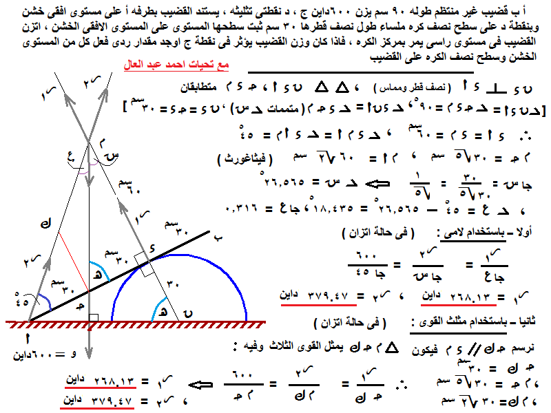 بعد كل الإعجاب بحل أستاذنا الأستاذ / محمد سعيد ــ متعه الله بالصحة ــ أستأذنه فى وضع حل ( مشابه لحل حضرته )