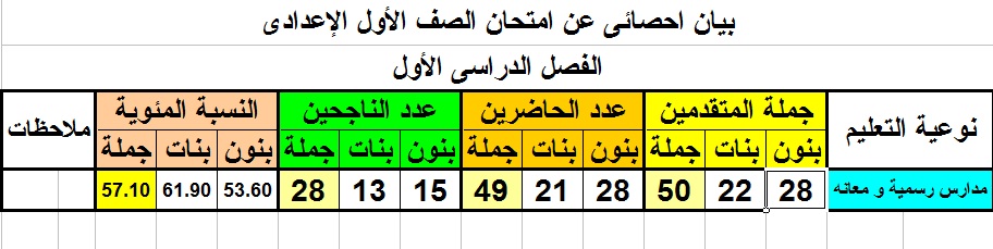 وكمان فيه جاجة شيت الصف الاول مظبوط 100% وبيدي الاعداد الصحيحة يعني اللي في الاحصاء العام هو نفسة اللي في احصاء الادارة يبقي المشكلة فين