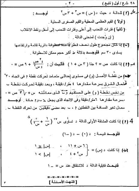 المراجعات والامتحانات والاسئلة الرياضيات البحتة 3 ث