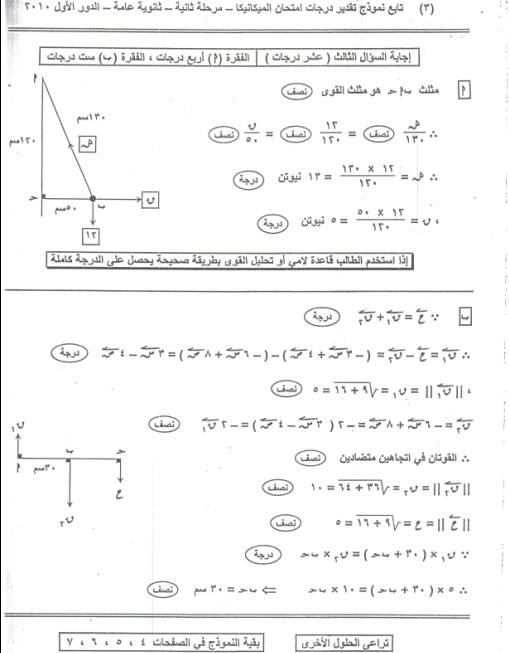 امتحان الميكانيكا + نموذج الاجابة 2010