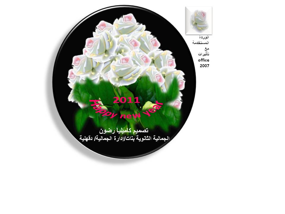 تصميم باقة ورد بيضاء أهديها لكل المشاركين بمناسبة العام الجديد وكل عام وأنتم بخير تم التصميم على الباور بوينت باستخدام تأثيرات office 2007 كاميليا رضوان