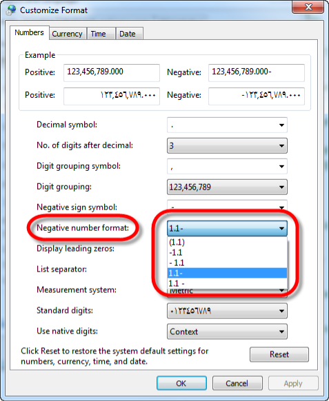 نحن في خدمتك ... بخصوص الإشارة السالبة .. جرب المحاولة الآتية: (1) روح نافذة Control Panel واتبع الخطوات .. (2) (3) |