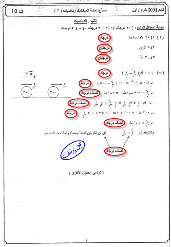إجابة السؤال الأول هو لو واحد طلع الناتج بتاع العزم غلط ينقص كام .... يريت مدرس بيصحح يرد عليا |