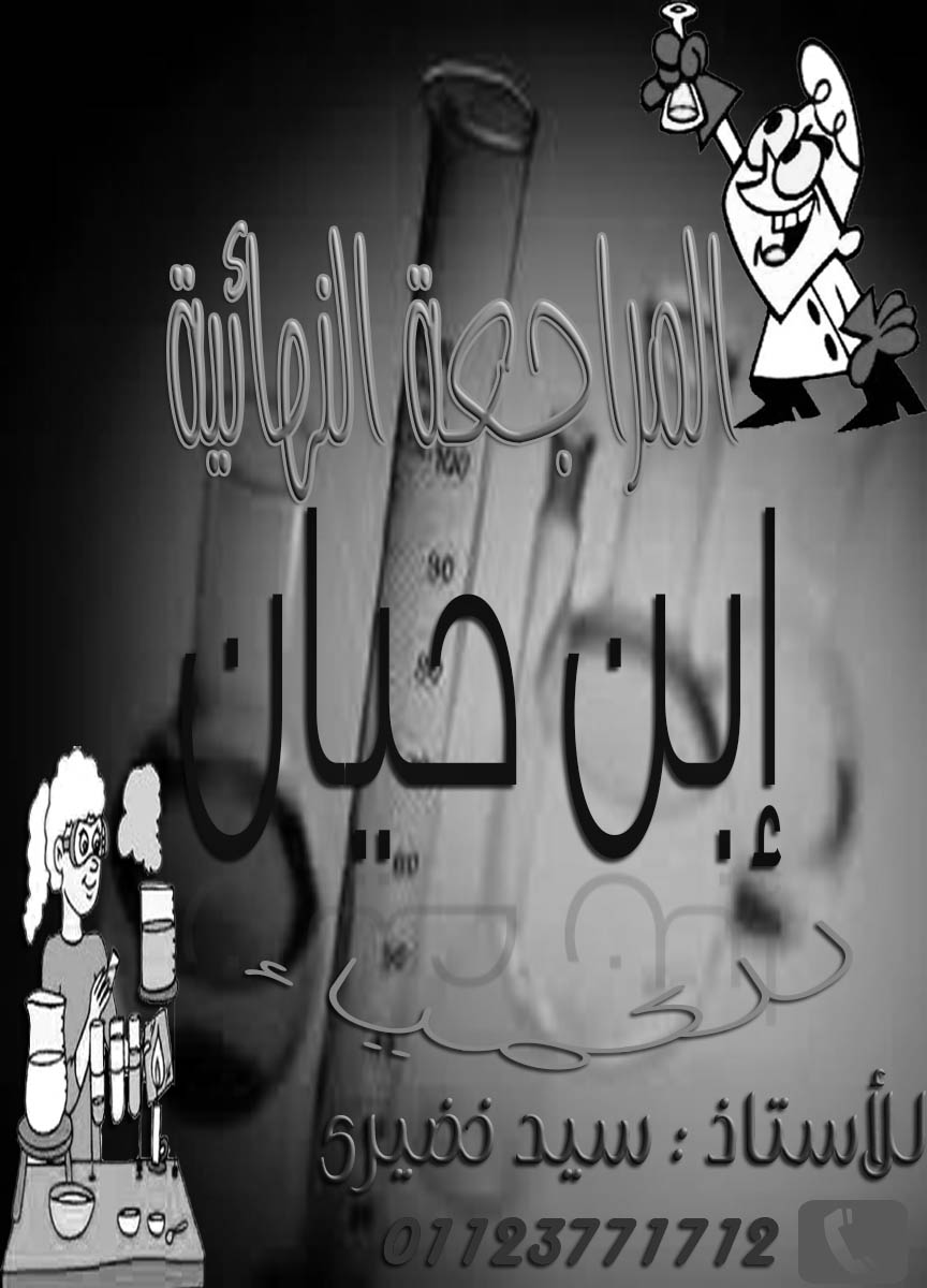 أرجو من سيادتكم تصميم غلاف ابن حيان في الكيمياء مقاس a4/2 على ان يكون الغلاف به اشكال كيميائية وتصلح للطباعة ايضا أبيض و اسود الاسم سيد خضيري 01123771712 مع نسخة أخرى مكتوب عليها المراجعة النهائية وجزاكم الله خير