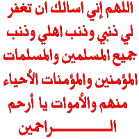 رب اغفر وارحم واعف وتكرم وتجاوز عم تعلم واهدنا السبيل الاقوم انك انت الله الاعز الاكرم0 رب اغفر لى ولوالدى وللمؤمنين يوم يقوم الحساب0 رب اوزعنى ان اشكر نعمتك التى انعمت على وعلى والدى وان اعمل صالحا ترضاه وادخلنى برحمتك فى عبادك الصالحين0 رب اوزعنى ان اشكر نعمتك التى انعمت على وعلى والدى واصلح لى فى ذريتى انى تبت اليك وانى من المسلمين0 اللهم اميـــــــــــــــــــــــــــــــــن 0000 * سيد الخطيب*** |