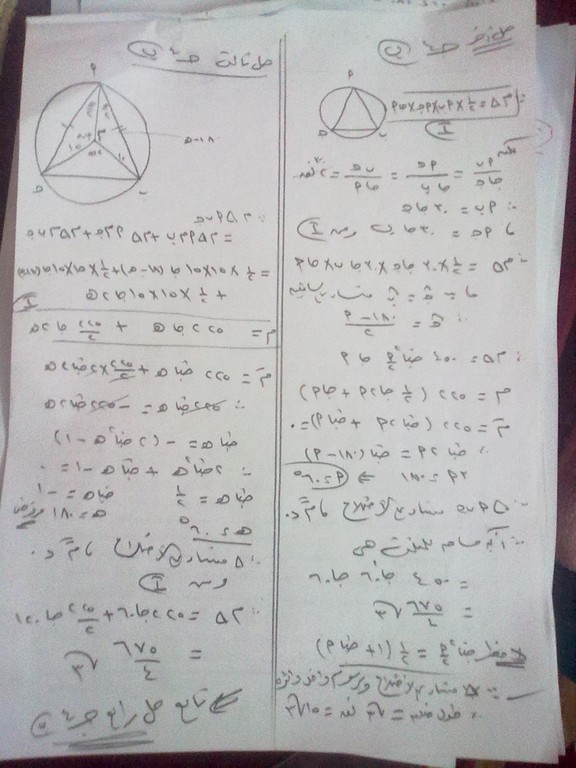 الحل الأول ل س4 ب خا طىء لانه اعتبر ساقى المثلث عدد ثابت وهذا خطأ والحل الصحيح هو الحل الاخر ويكون الناتج ( 675*جذر3)/4