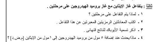 1 مول من الإيثاين يتفاعل مع 2 مول من بروميد الهيدروجين (الإضافة على مرحلتين) ويتبقى 3 مول من الإيثاين دون تفاعل