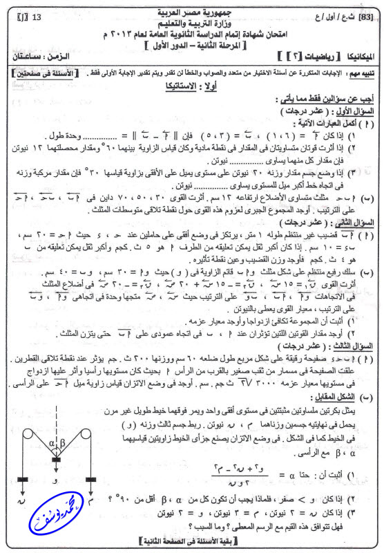 إجابة السؤال الأول هو لو واحد طلع الناتج بتاع العزم غلط ينقص كام .... يريت مدرس بيصحح يرد عليا |