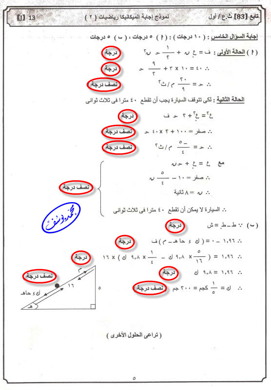 ولو كتبت القانون في نقطة في اكمل بس طلعت الناتج غلط ممكن اخد نص درجة ولا الدرجة على الناتج النهائي بس