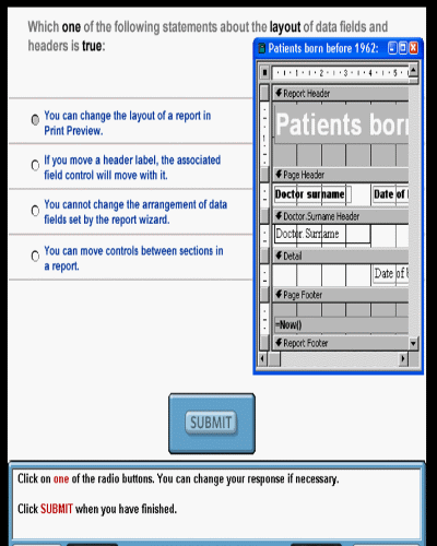 اجابة السؤال الأول you can move controls between sections in a report اجابة السؤال الثاني it enables a child record to be entered without a parent |