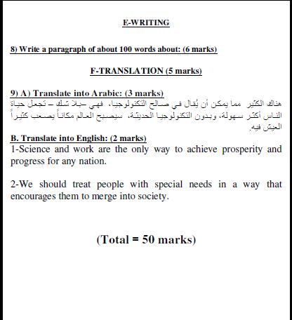نموذج اجابة الوزارةامتحان اللغة الانجليزية