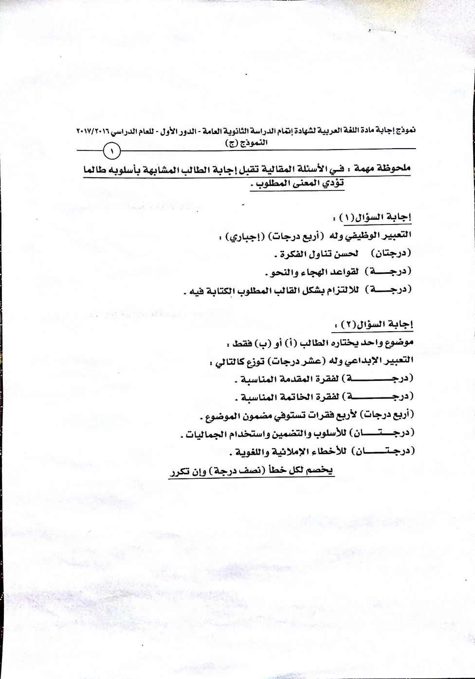 هذه أفضل صورة لنموذج الإجابة، إهداء من أخي الدكتور عبد الحميد، أدام الله الود والمحبة، وجزاه خيرا.