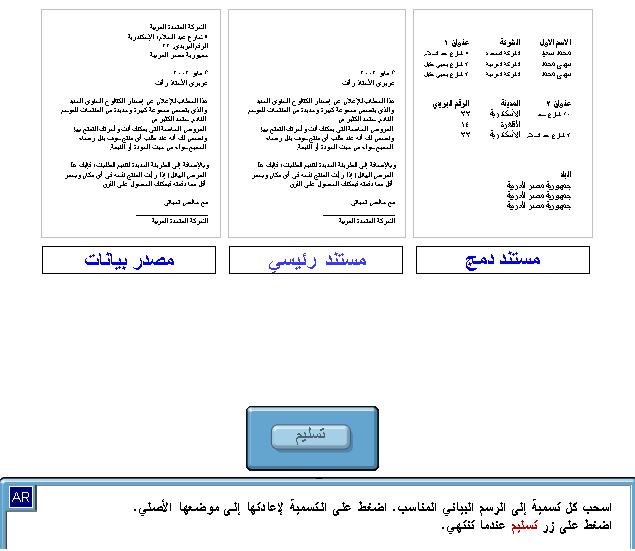 وانا ارفق لك السؤالين الخاصين بدمج المراسلات وهو باللغة العربية وارجو ترجمة الاسئلة الثانية والاجابات الصحيحة باللغة العربية ولك الشكر وتقبل كل احترامي |