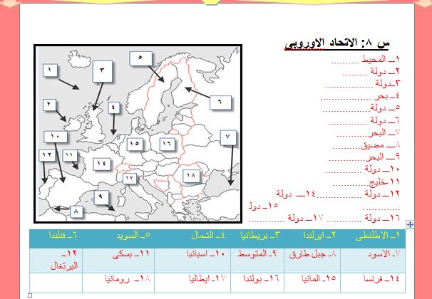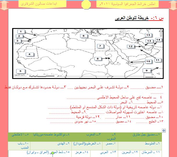 اطلس خرائط الجغرافيا السياسية للصف الثالث الثانوي 2017 بالاجابات word