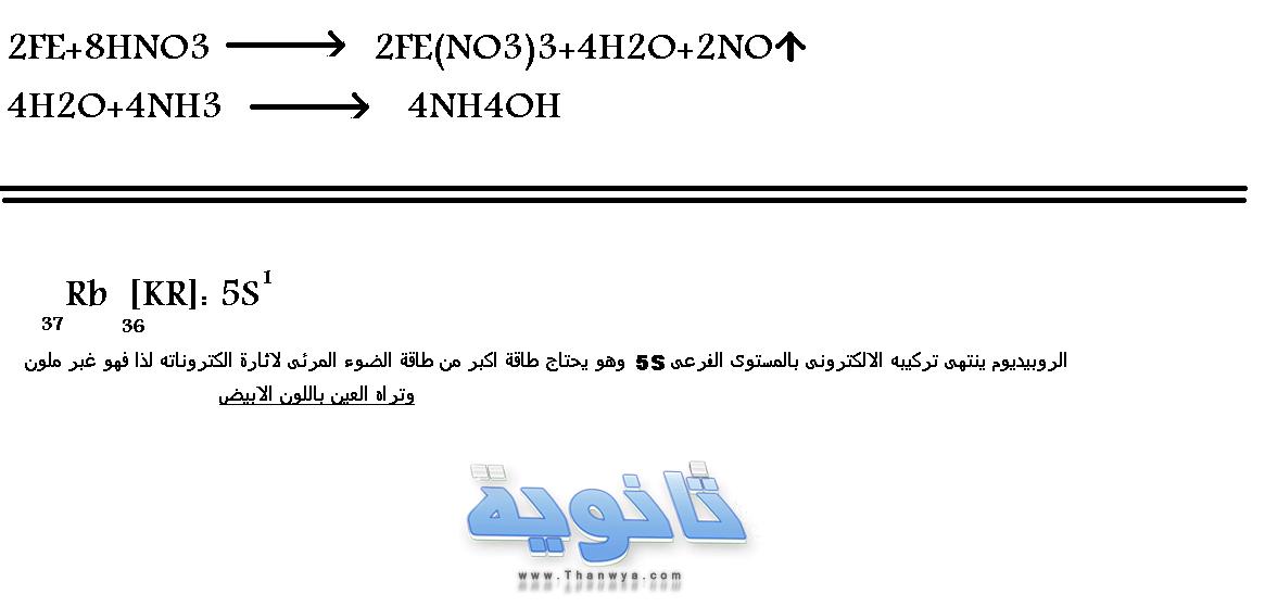 من المواد : NaOH , NH4CL , H2SO4 (conc.) , Fe , ماء مقطر , لهب , و عايز 1) غاز امــــــــــــونيا . 2) هيدروكسيد الحديدوز . 3 ) نترات الامونيوم . 4) اكسيد النتريك 6 ) ثانى اوكسيد النيتروجين .................................................. ............. كمان اكتب بالمعادلات : اضافة الحديد الى حمض النيتريك المخفف ثم اضافة سائل النشادر . .................................................. ................ Rb + 2 هل هو ملون ام لا ؟و السبب . .................................................. ............... |