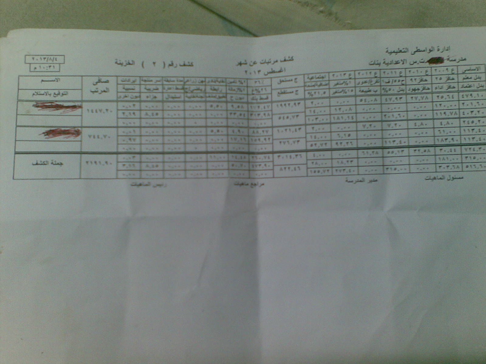 هذة صورة من المرتبات واريدها بنفس الطريقة علي برنامج اكسل 2003