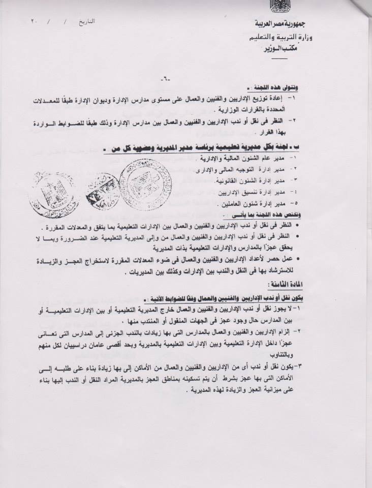 قرار 202 الخاص بقواعد النقل والندب والذى أثار ازمة بسبب رفض الوزارة وضعه على بوابتها لعدم تمكنها من تنفيذه بسبب انه سيعيد تسكين المدرسين والموظفين وسد العجز فى اماكن العجز وهو تمكنت من تجميعه صور حمل واطبعه وباقة ثلاث صور سأرفعها فى تعليق