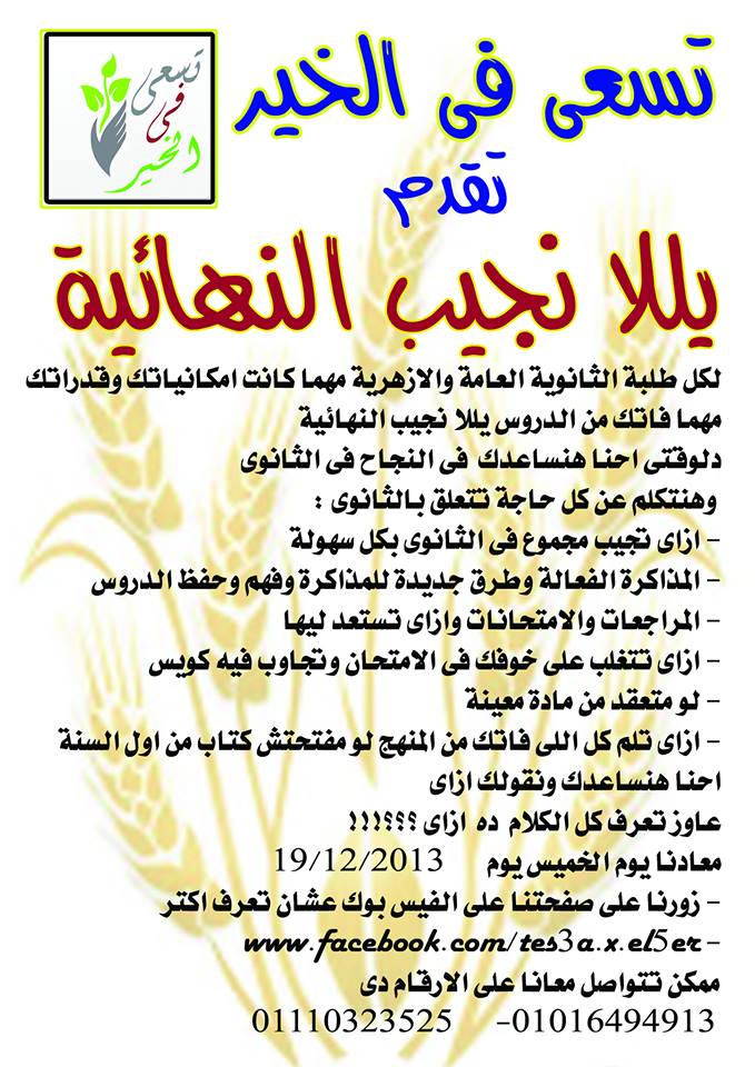 انا طالب فى 3 ث ازهر قررت اعمل يلى نجيب النهائية ودى زى حملة تدريب بتتكلم