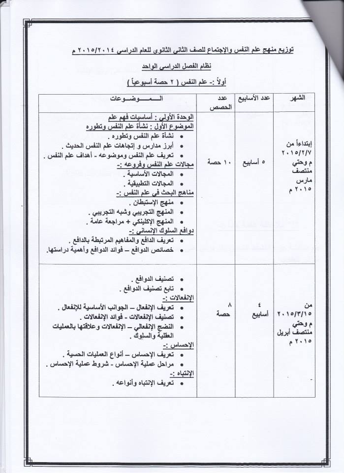 توزيع المنهج 2ث و 3ث علم نفس واجتماع