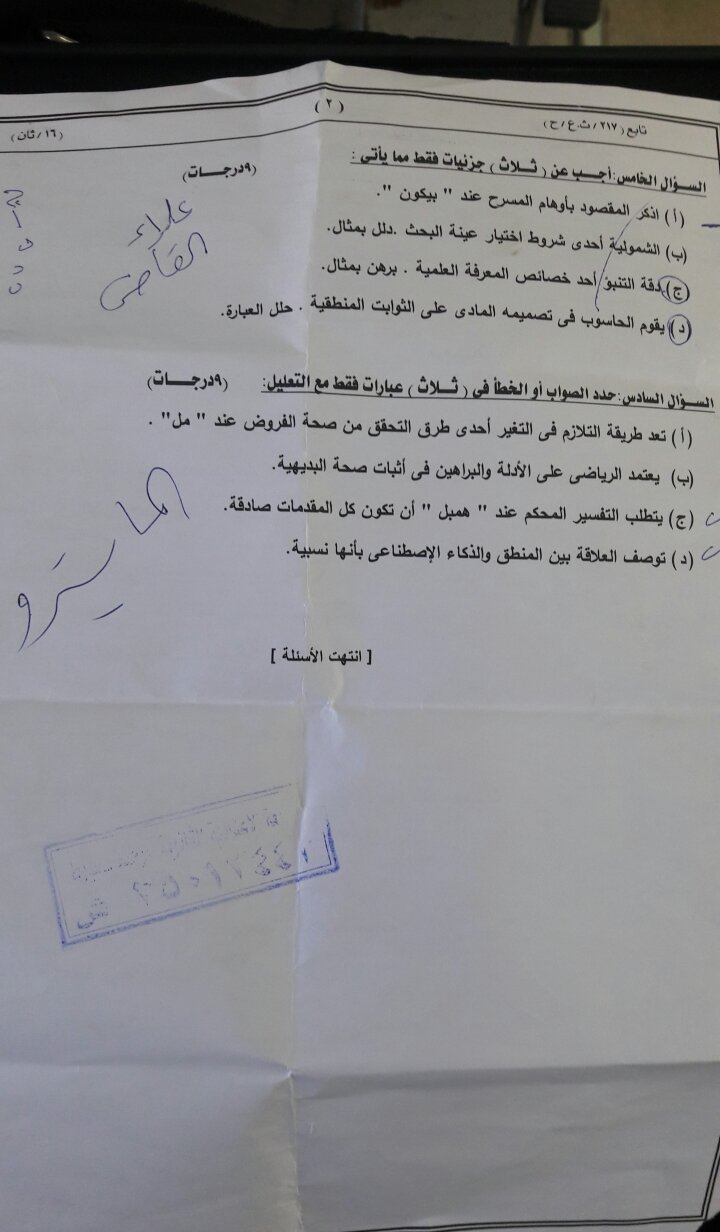 Exll امتحان دور ثان الفلسفة والمنطق 2016