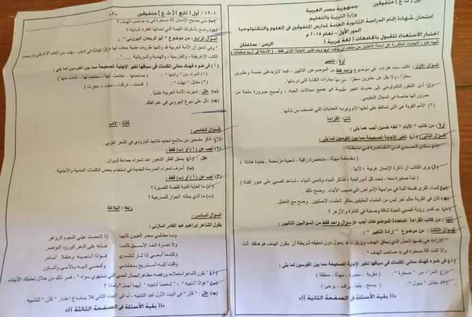 امنحان اللغة العربية 2018 لمدارس المتفوقين فى العلوم و التكنولوجيا