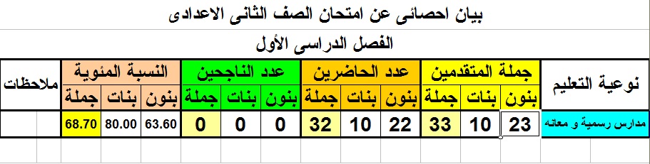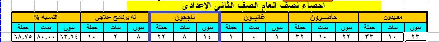 ا / احمد للأسف لسة فية نفس المشكلة في شيت الصف الثاني في الاحصاء الخاص بالادارة في الجدول العلوي البرنامج مبيحسبش اعداد الطلبة الناجحين بنون وبنات لذا ارجو من سيادتك الاتي
